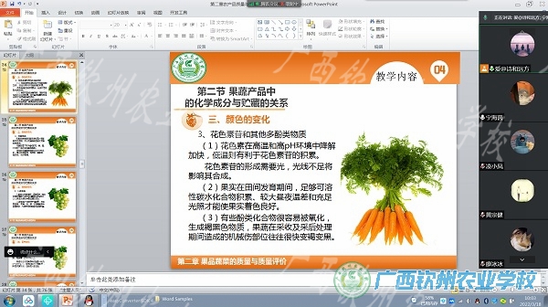 图一为劳钦老师在为同学们讲授《农产品贮存与保鲜》线上课堂