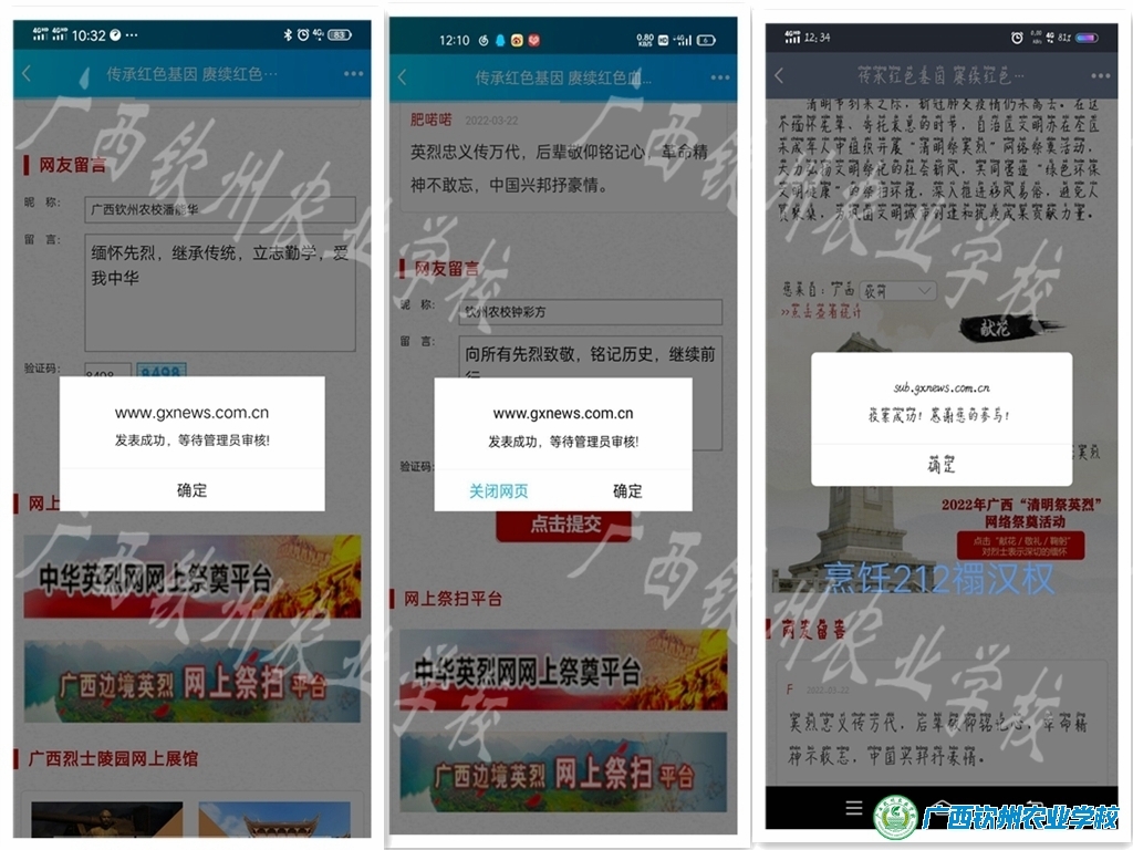 3月26日至4月5日,青年学生通过登录广西文明网,参与了网上献花、敬礼、鞠躬和留言寄语等活动,学习英烈精神,表达对革命先烈的追思和敬仰,真正做到了共战疫情、共享文明绿色的社会新风尚。