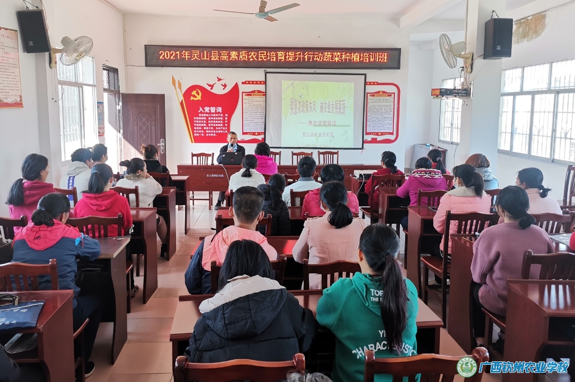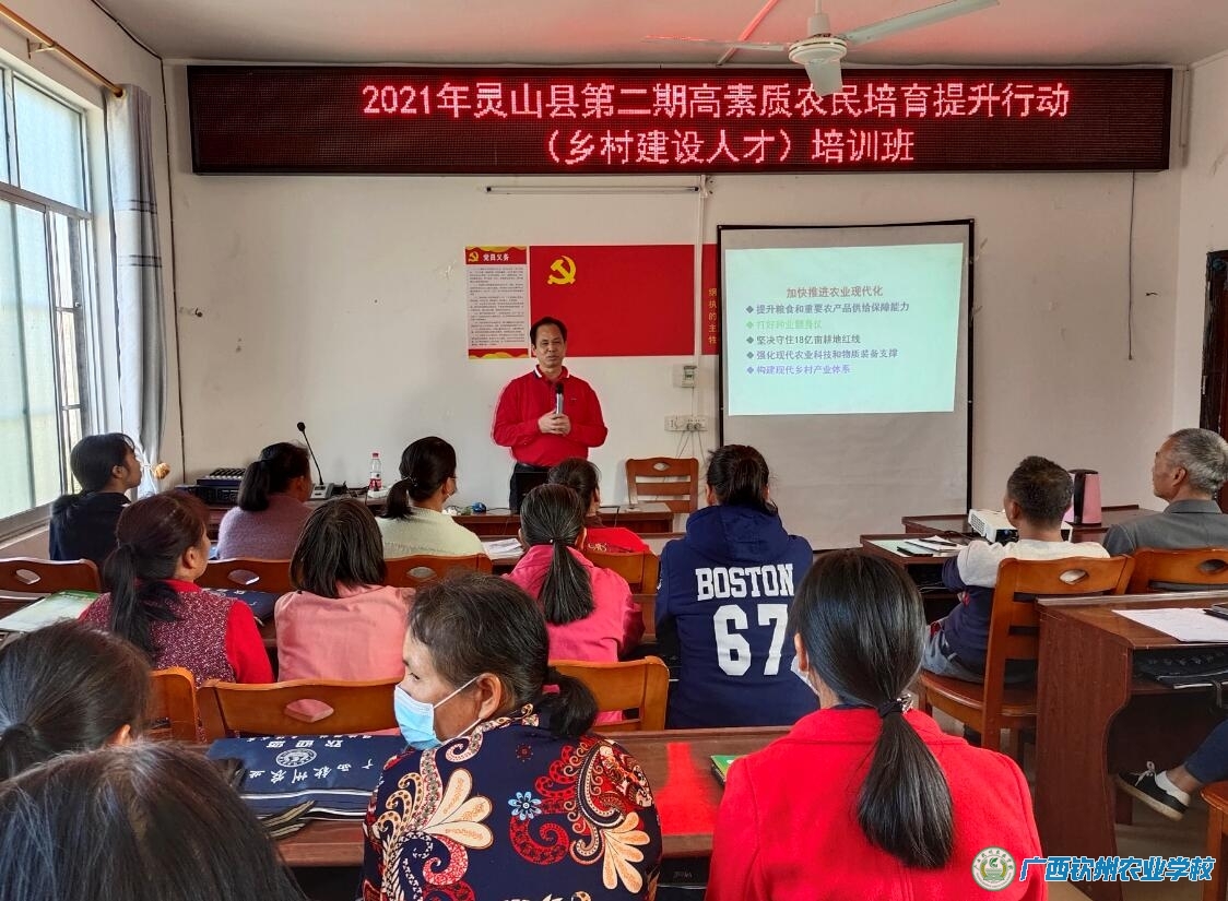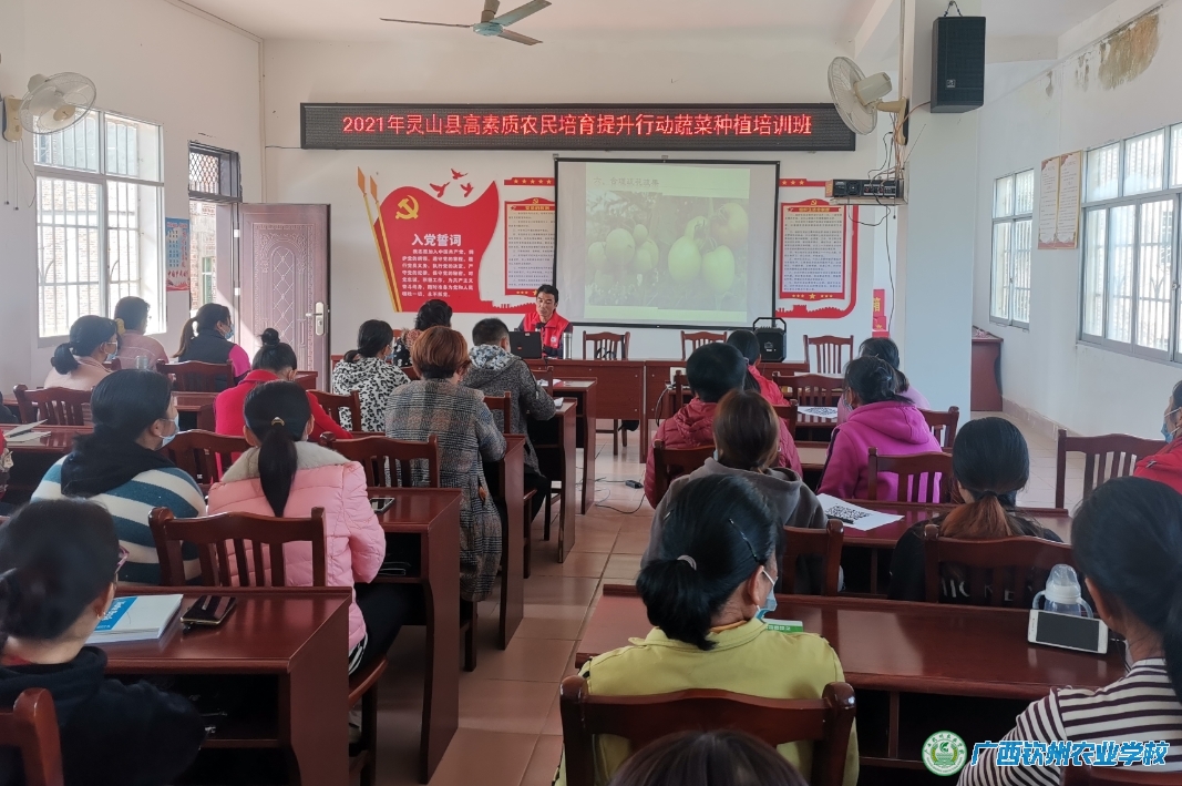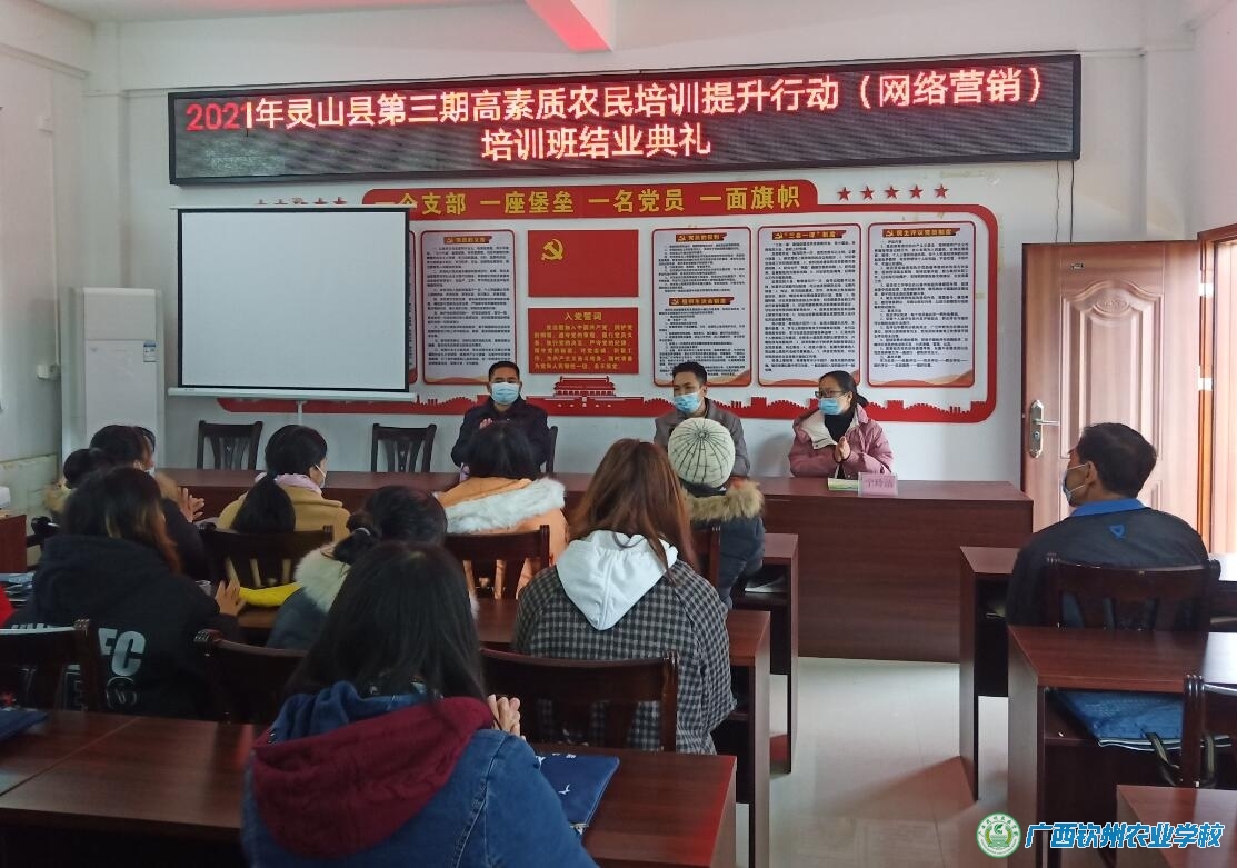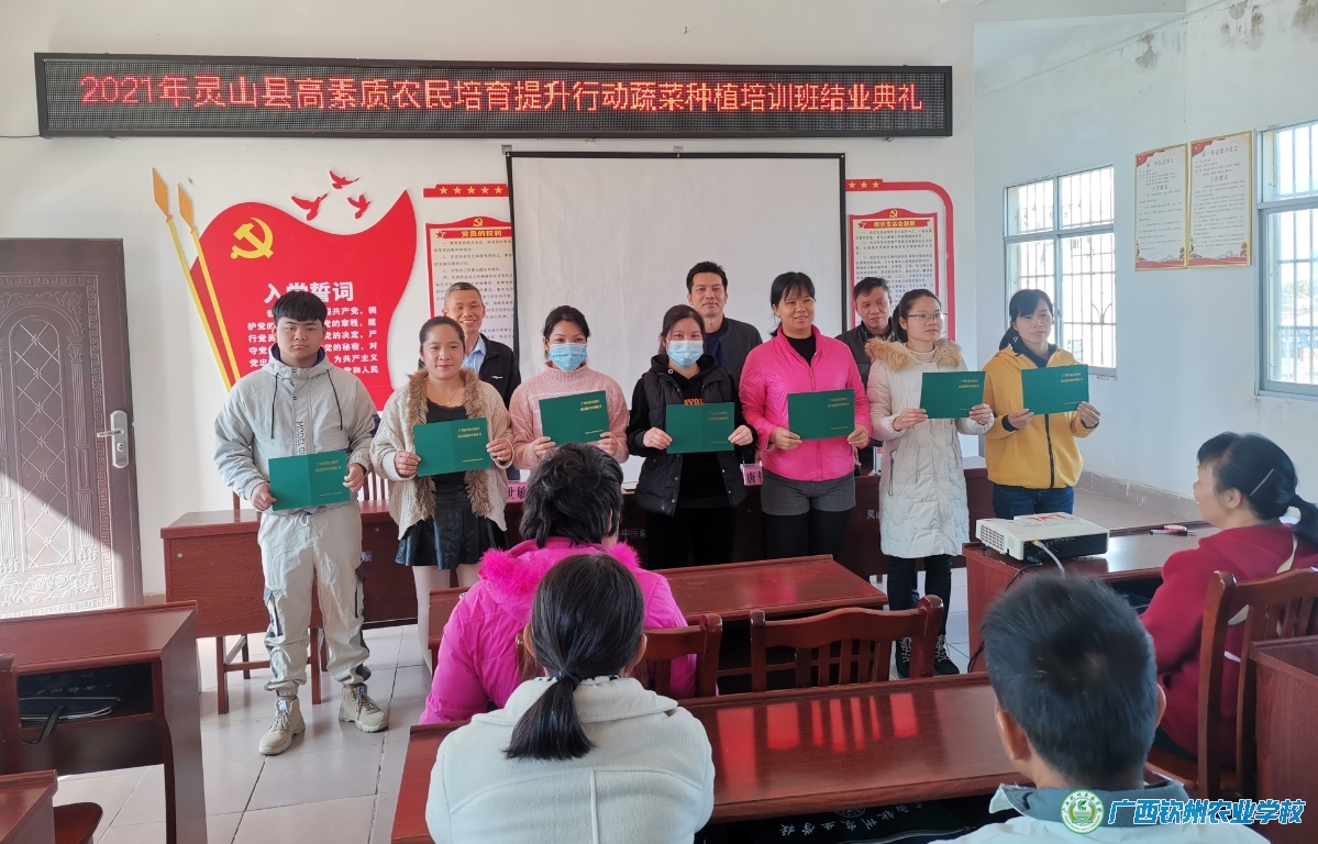 2021年11月23日至12月29日,我校在灵山县顺利开展了2021年灵山县高素质农民培育提升行动蔬菜种植产业、村集体经济产业和网络营销产业培训班项目任务。根据灵山县产业发展需要和乡村建设人才培训需求,此次培训同时开展经营管理型高素质农民三期培训班,分别安排在檀圩镇、新圩镇和陆屋镇进行开展蔬菜种植、乡村人才建设和网络营销培训工作,每一期15天,一个多月时间,对灵山县的合作社带头人、农村创新创业青年和产业扶贫带头人等167人从村集体经济产业开展系统的培训。培训班采取“送教下乡、集中培训、重实训”的培训模式,以实地观摩、现场授课方式进行。为确保培训取得实在效果,灵山县农业农村局认真组织遴选了培训学员,对培训过程实行全程现场指导,我校严格执行培训计划,每期培训班都建立班主任制度、学员培训考勤制度、满意度调查制度及培训台账制度等。学员一致表示要把培训中所学到的新知识、新技能,真正运用到发展产业当中,努力做好先进生产技术的推动者,助力全县农村经济社会发展再上新台阶。