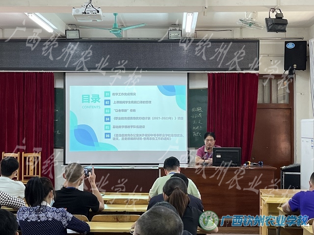 会上,郑修营主任从教学工作完成进度、上课期间学生佩戴口罩的管理、“以老带新”任务的完成、基础教学部所承担的《职业教育提质培优行动计划(2021-2023年)》项目、学部教学队伍建设问题这5个方面进行讲解,并传达了《自治区教育厅办公室关于做好中等职业学校思想政治,语文、历史统编教材统一使用准备工作的通知》精神。