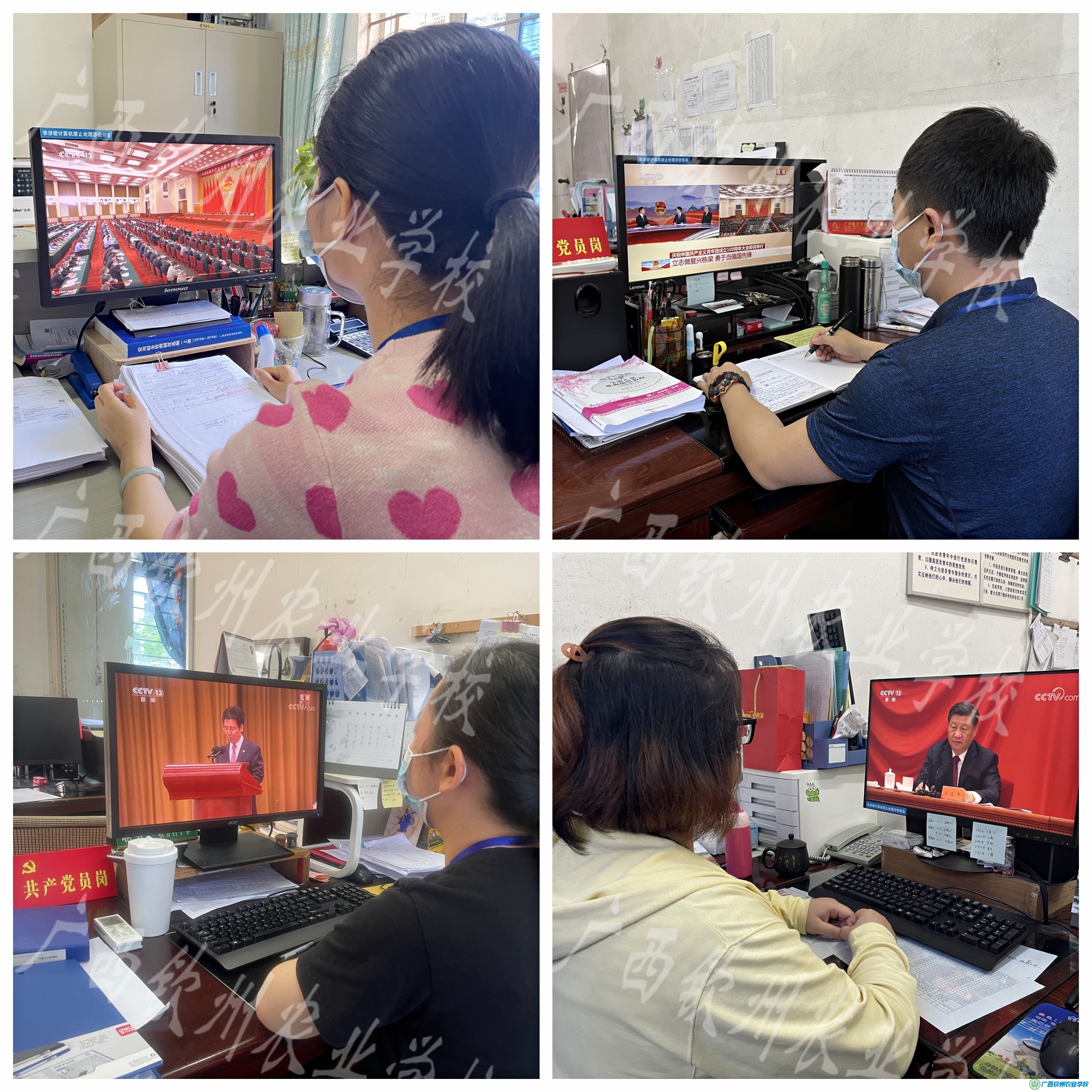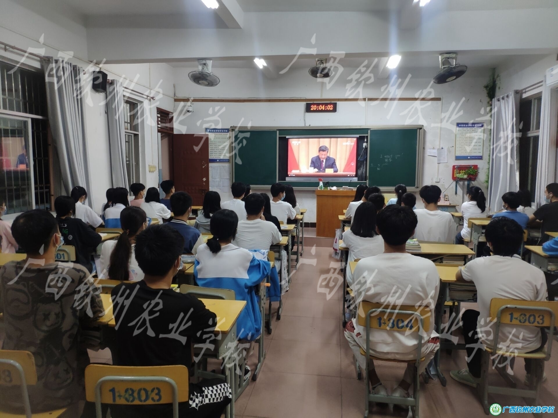 各班学生集中收看大会回放视频
