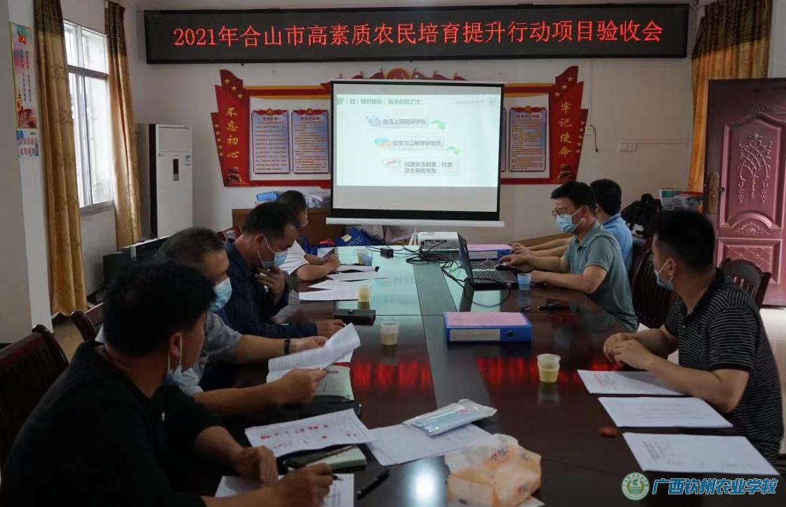 会上,合山市农业农村局张现强站长宣读了《合山市2021年高素质农民培育普及行动项目验收办法》,随后验收小组听取了我校李副校长的总结汇报,审查培训材料并进行了现场电话抽查回访。