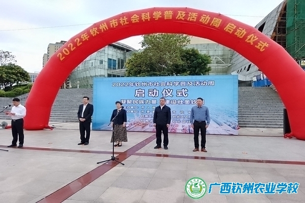 5月16日上午,由市人民政府主办,市委宣传部、市社科联、钦南区和钦北区人民政府、钦南区和钦北区社科联承办的2022年钦州市社会科学普及活动周启动仪式在钦州市文化艺术中心举行。今年社会科学普及活动周的主题是“凝聚民族力量,建设美丽广西” ,与广西社会科学普及活动周同步于5月16—22日在全区范围内举办。我校李运光副校长代表学校应邀参加了此次活动。我校以 “普及科学技术,助力乡村振兴”为主题的宣传展板,向公众展示了我校“科普、研学、劳动”教育、党史学习、喜迎党的二十大、乡村振兴的活动内容。