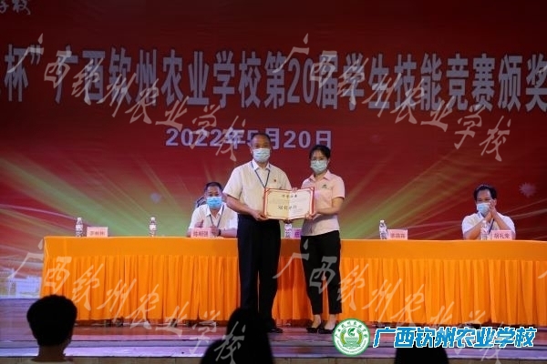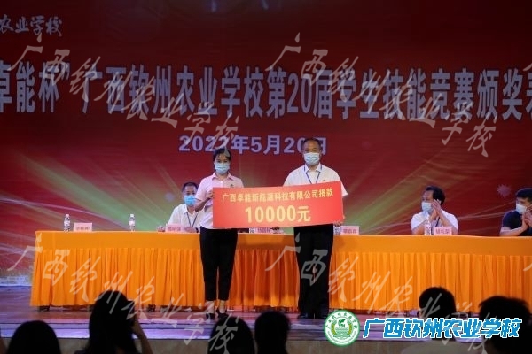 本届技能竞赛共开设比赛项目49项,学生参赛6509人次,再创新高。各赛项经初赛、决赛,最终评出一等奖77人、二等奖129人、三等奖200人。当天下午,在学校大礼堂举行颁奖仪式。副校长陈明强宣读获奖名单;学校领导、相关科室负责人和广西卓能新能源科技有限公司领导向各项目获得一等奖的学生颁发获奖证书。本次比赛得到了广西卓能新能源科技有限公司的鼎力支持,为本次活动提供了赞助。在颁奖式上,该公司人力资源部经理覃霜霜代表公司为学校捐赠10000元,党委书记、校长伍国樑为公司授予冠名单位证书。