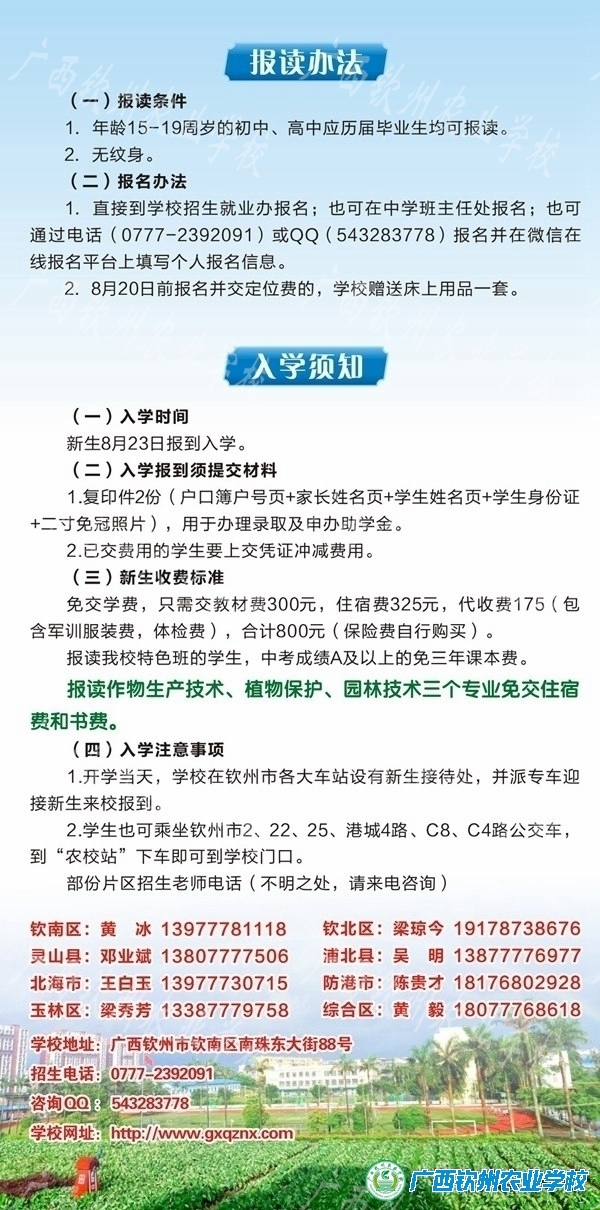 广西钦州农业学校2022年招生简章