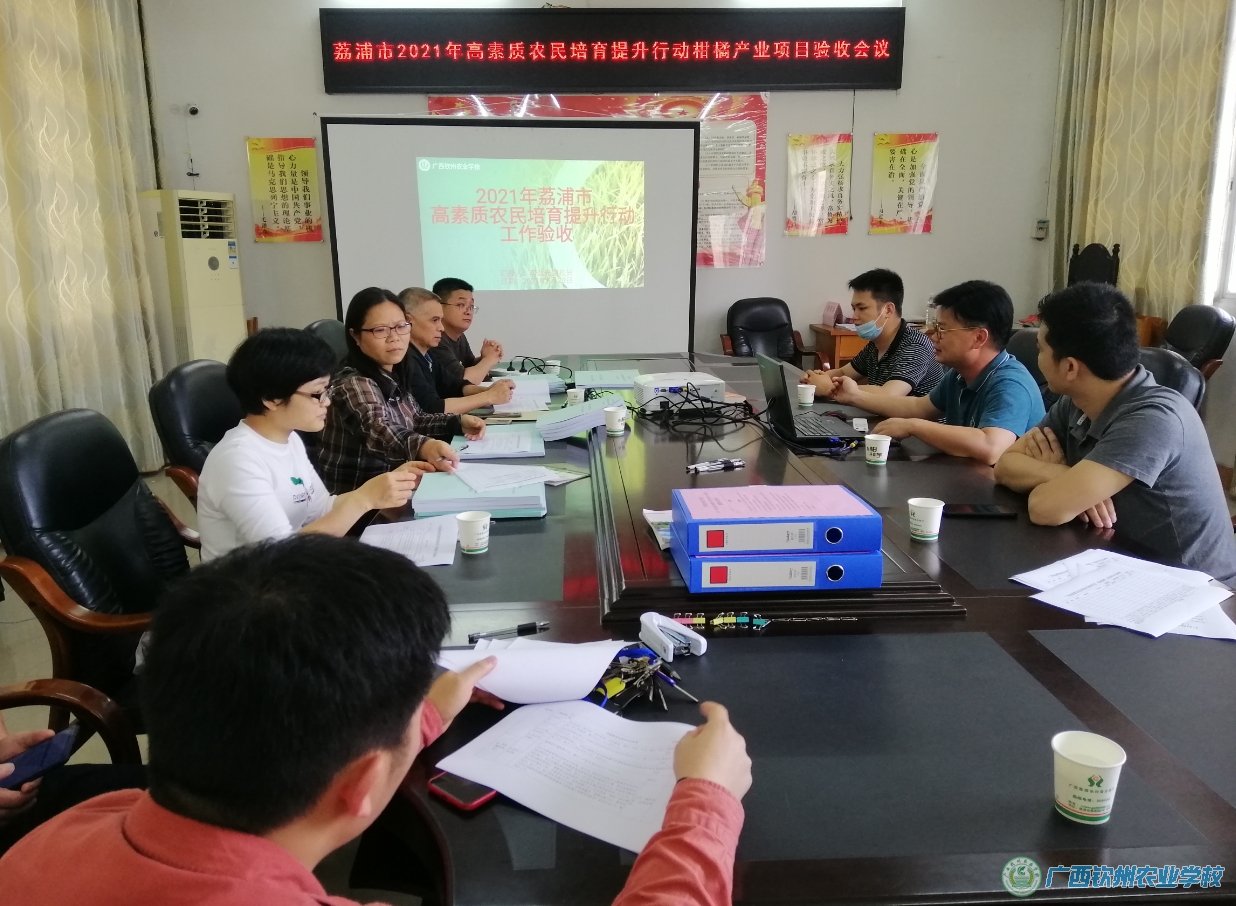 根据农业农村部科技教育司《关于印发〈高素质农民培育规范〉和〈高素质农民培育工作绩效管理指标体系(2021年)〉的通知》[农科(教育)函〔2021〕16号]精神,执行广西农业农村厅的《广西高素质农民培育规范》和《广西高素质农民培育项目绩效管理指引(试行)》。2022年5月26日下午,2021年荔浦市高素质农民培育提升行动项目验收会议在荔浦市农业农村局会议室召开。荔浦市农业农村局验收专家小组对我校承担的2021年荔浦市高素质农民培育提升行动项目开展了专项验收工作。学校李运光副校长一行4人参加了会议。