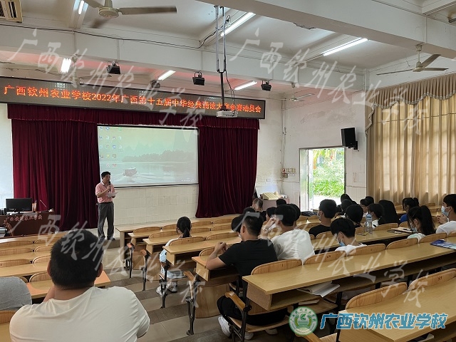 动员会上,郑修营主任详细解读了我校2022年广西第十五届中华经典诵读大赛暨2022广西校园中华经典诵读大赛参赛工作方案,希望学生们积极参与,语文老师们高度重视,增强荣誉感,严格要求,刻苦训练,争取好的成绩,为校争光。
