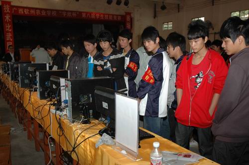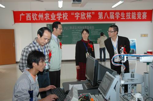 艰辛知人生,实践长才干。开展专业技能竞赛是提高学生技能、检验教学成果、对接企业生产的一个重要举措。2003年以来该校坚持每年组织开展学生专业技能竞赛,竞赛项目有艺术插花、种子质量检测、动物外科手术、植物病虫标本识别、电子产品装配及调试、电视机维修、PLC技术应用、计算机动画设计与制作、汽车基本维修等20多个。今年已是第八届,经过2个月的培训与筛选,有430多名选手进入本次决赛。这次竞赛还一个亮点就是,该校“引企入校”,通过协商,与广西钦州宇欣电子科技有限公司进行合作,公司通过赞助,取得该校第八届学生技能竞赛的冠名权。钦州农校每年一度的学生专业技能竞赛是该校学生的盛事,通过校本竞赛,选拔优秀选手参加全区乃至全国赛事,该校近年在参加全区各全国学生技能竞赛均有不俗的表现。