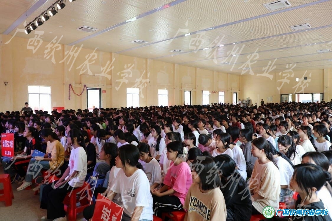 图为“追逐梦想、钦农为你起航”新生入学教育大会现场