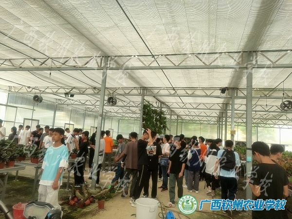 图为学生在参观园林大棚