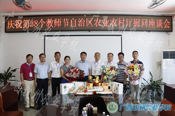 九月清风吟师情,丹桂飘香颂师恩。2022年9月6日上午,自治区农业农村厅副厅长、党组成员梁纪豪率队到我校进行教师节慰问活动,向学校全体教师致以节日问候和衷心祝福。