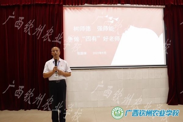为深入学习贯彻习近平新时代中国特色社会主义思想,巩固拓展党史学习教育成果,激励广大党员坚定理想信念,践行初心使命,做“四有”好老师。9月21日下午,我校开展2022年党组织书记带头讲党课活动,由学校党委书记、校长伍国樑主讲《树师德强师能,争做“四有”好老师》专题党课。全体党员、中层以上干部、入党积极分子聆听党课。