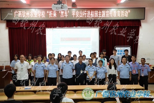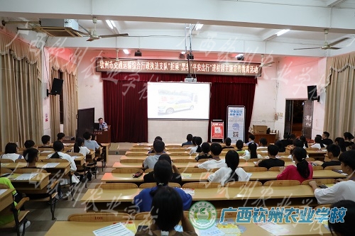 活动当天,钦州市交通运输综合行政执法支队的警官作了“出行安全”的专题知识讲座,然后通过提问的方式,加强学生对“黑车”的认识,对“安全出行”的重视。