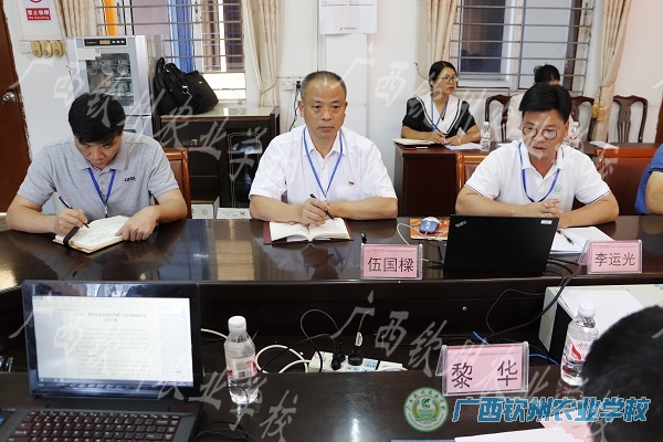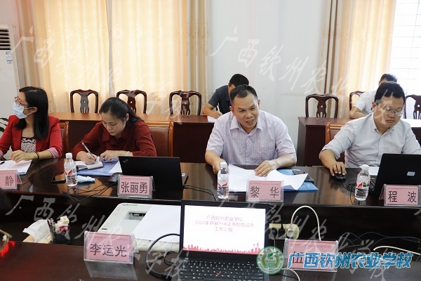 11月3日下午,以柳州职业技术学院教务处处长黎华为组长的自治区教育厅工作组一行5人,到我校开展2022年广西1+X证书制度试点抽查检测工作。我校党委书记、校长伍国樑、副校长李运光以及教务科、各教学部等相关科室部门负责人、各考试项目负责老师参加了工作汇报会。