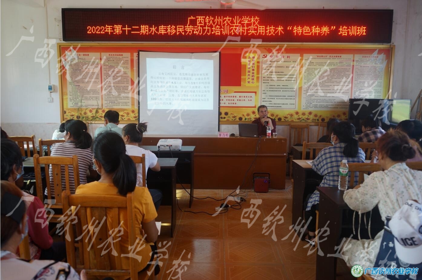 送人才下乡,共助乡村振兴。在北海市、合浦县乡村振兴水库移民局和石康镇政府领导的大力支持下,我校顺利完成了2022年第十二期水库移民农村实用技术特色种养培训送教下乡培训班工作,于10月21日至26日共计6天的所有培训任务圆满完成,来自石康库区的水库移民58名学员集中到石康镇太平村委进行集中培训。我校组织专业理论深厚、实践经验丰富的高级讲师对学员进行授课,同时组织学员开展了培训班级研讨。
