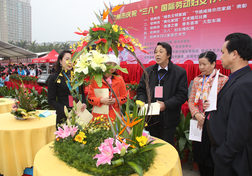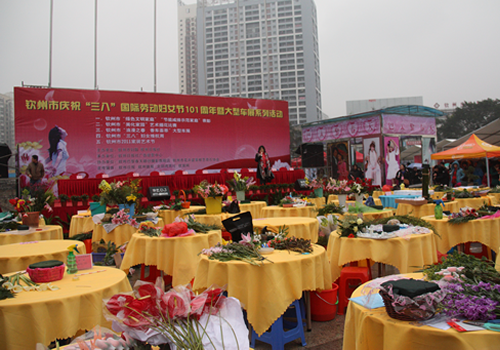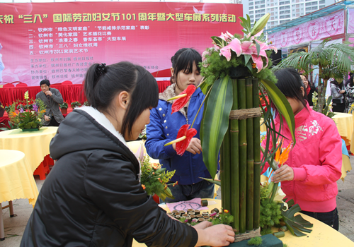 2011年3月4日上午,为庆祝“三·八”国际劳动妇女节101周年,钦州市妇联、钦州日报社联合主办钦州市美化家园“艺术插花”比赛活动,比赛在钦州湾广场拉开序幕。