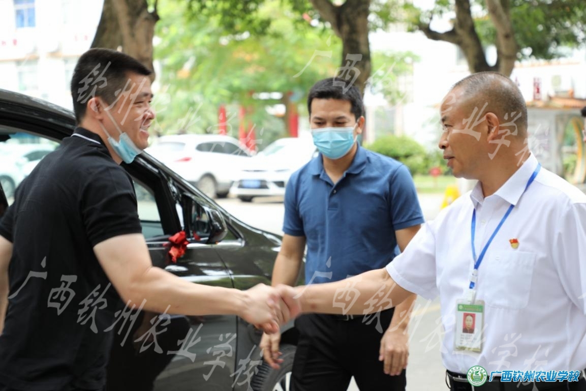 林庆部长(左1)与伍国樑校长(右1)亲切交谈