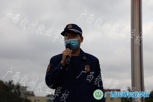 为认真贯彻执行“预防为主、防消结合”的消防方针,持续提升广大师生员工的消防安全意识,有效提高师生的火灾防范自救能力和突发事件的应变处置能力。11月28日下午,我校开展消防及应急疏散演练活动,邀请了钦州市钦北区消防救援大队梁立海参谋到场指导。全体师生、教官参加演练。副校长陈明强、副校长李运光出席活动。