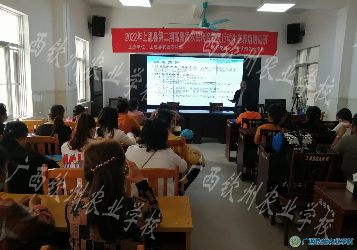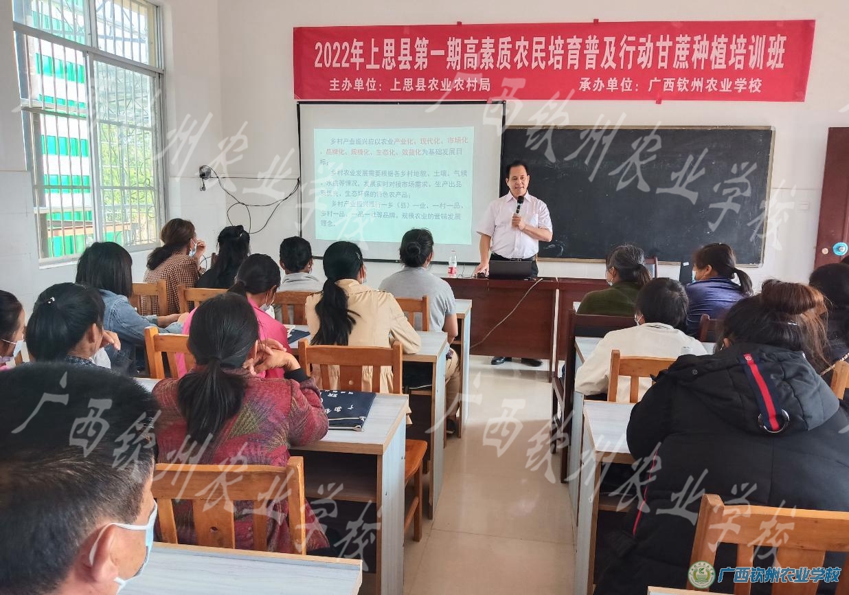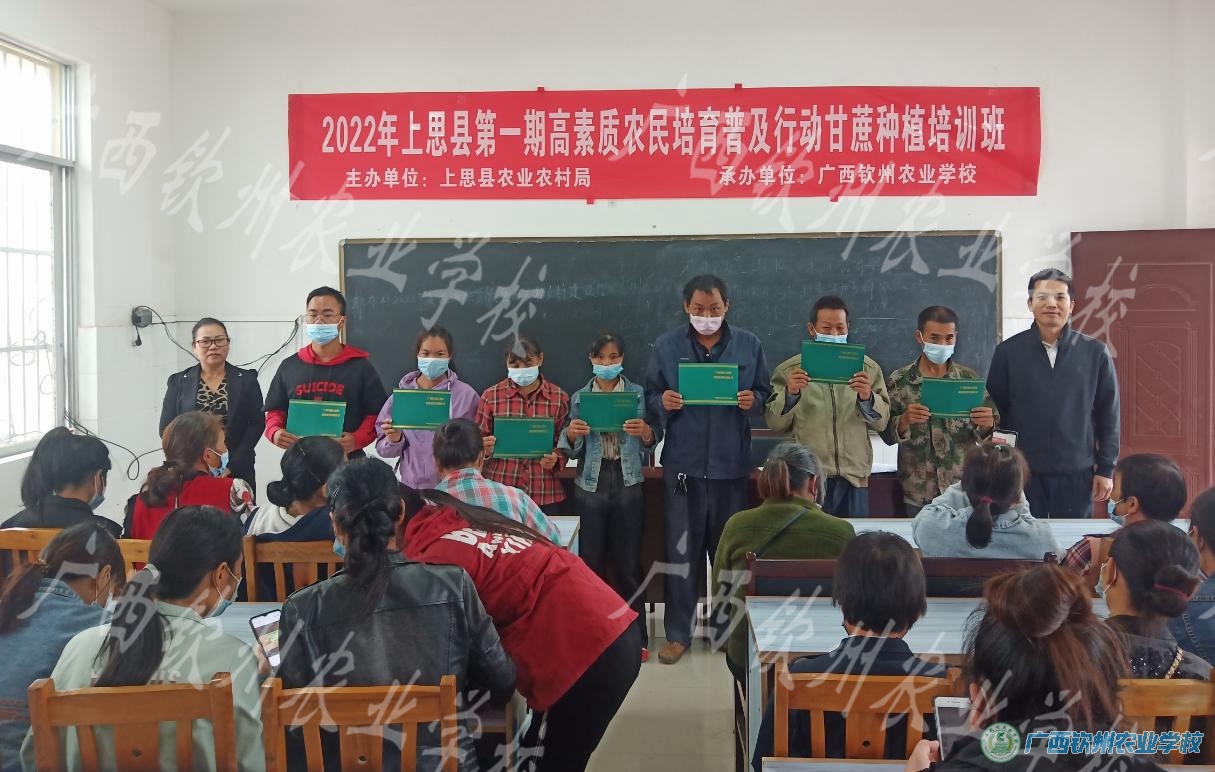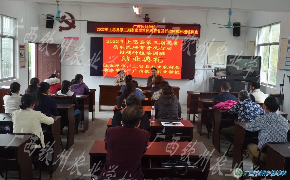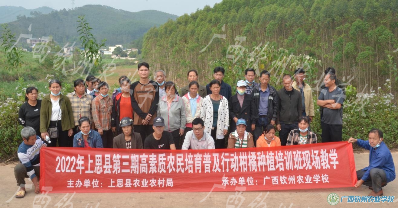在做好疫情防控的同时,我校于2022年11月29日在上思县举办的2022年高素质农民培育普及行动工作圆满收官了。根据《自治区农业农村厅办公室关于印发2022年广西高素质农民培育实施方案的通知》(桂农厅办发〔2022〕94号)要求,我校与上思县农业农村局签订培训协议,按照上思县产业发展需要和乡村建设人才培训需求,此次培训同时开展上思县甘蔗、柑橘和生态养殖三大产业的高素质农民共计三期培训班,分别安排在叫安镇那布村和叫安村、那琴乡联惠村。每一期各进行15天分阶段的培训,对上思县合作社带头人、农村创新创业青年和产业扶贫带头人等135名学员开展系统的培训。培训班采取“送教下乡、重实训”的培训模式,以实地观摩、现场授课方式进行。为确保培训取得实在效果,上思县农业农村局认真组织遴选了培训学员,对培训过程实行全程现场指导,我校严格执行培训计划,每期培训班都建立班主任制度、学员培训考勤制度、满意度调查制度及培训台账制度等。学员一致表示要把培训中所学到的新知识、新技能,真正运用到发展产业当中,努力做好先进生产技术的推动者,助力全县农村经济社会发展再上新台阶。