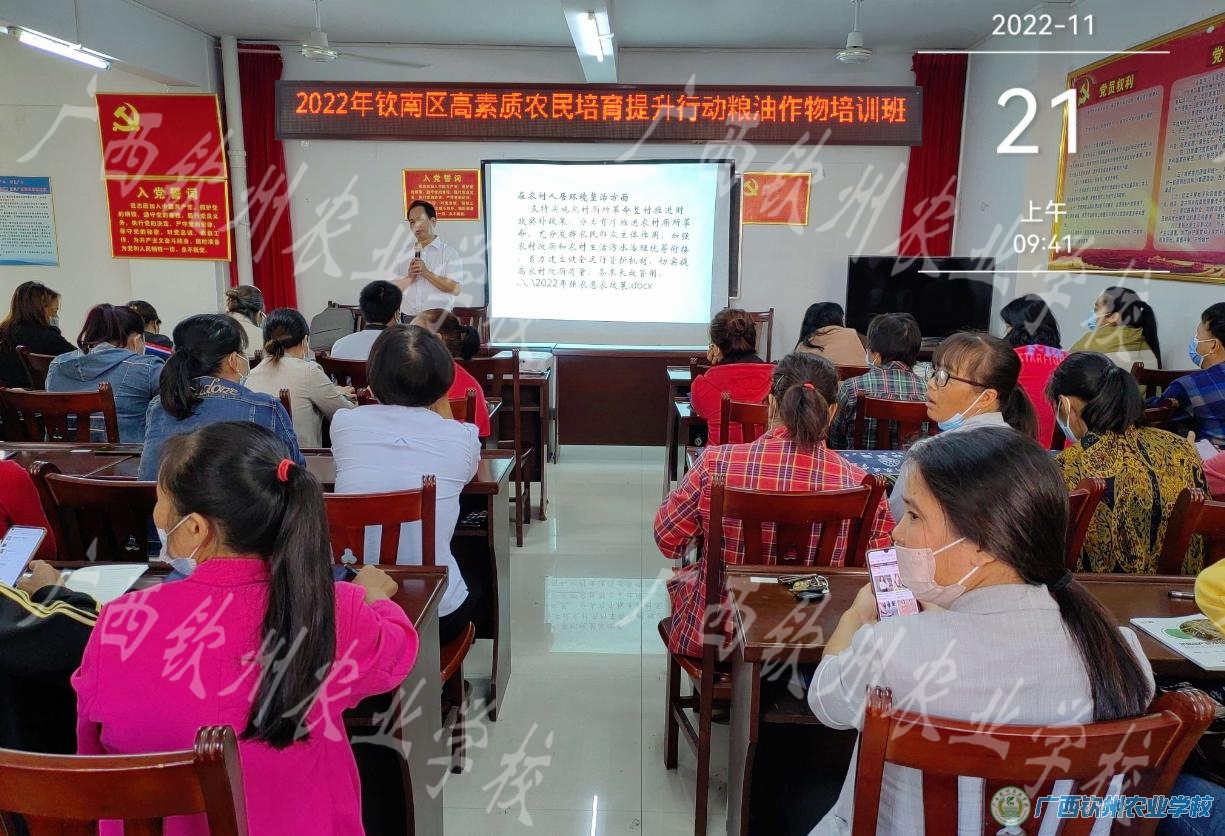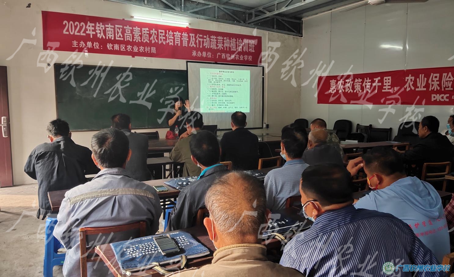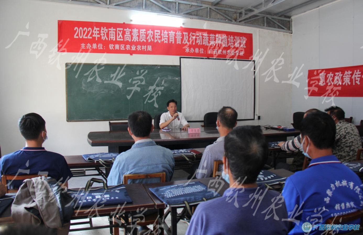 疫情当前,责任在肩,我们在行动。根据《自治区农业农村厅办公室关于印发2022年广西高素质农民培育实施方案的通知》(桂农厅办发〔2022〕94号)要求,11月28日,我校在钦南区开展2022年钦南区高素质农民培育提升行动培训班完满收官。按照钦南区产业发展需要和乡村建设人才培训需求,培训班于以“理论课程和实践课程相结合”为主,采取“分段式、重实训”的培训模式。在钦南区久隆镇和黄屋屯镇两个地方分别开展蔬菜产业和粮油作物产业系统化培训,为稳定钦南区主粮生产和”菜篮子“供应打下了坚实基础。按照农业生产环节分阶段组织培训,培训过程加强实训操作,以农民为核心,以田间为课堂,开展互动式、启发式、参与式的学习方式。钦南区2022年高素质农民培育普及行动34名和提升行动67名学员满怀信心的参与了全过程培训。