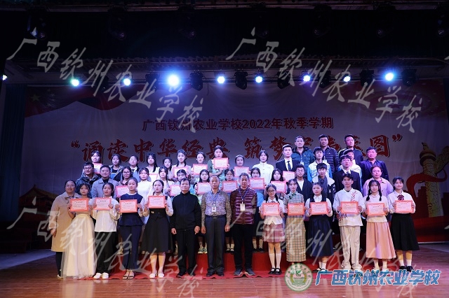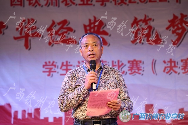 比赛的最后,伍国樑校长发表了讲话。他对取得优异成绩的同学表示热烈祝贺!对本次比赛的举办表示了充分的肯定!对组织此次活动的基础教学部及相关老师表示感谢!伍校长还特别强调,我们要认真学习党的二十大精神,把坚持和发展马克思主义,同中华优秀传统文化相结合;我们要继续推进经典诵读活动,让读经典、背经典、用经典成为我们的日常学习习惯,成为优秀的钦农学子,成为对国家和民族的有用之才。