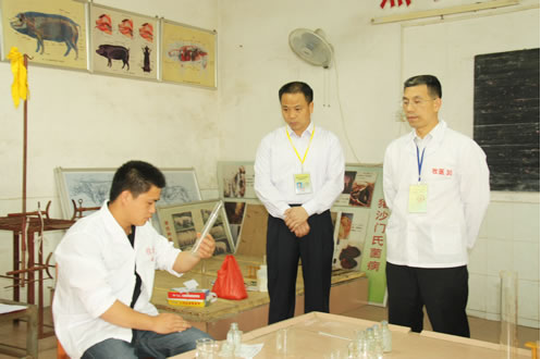 农业部农业-092号特有工种职业技能鉴定站和我校于2011年4月22日至25日共同组织动物疫病防治员、动物检疫检验员、家畜饲养工、家畜繁殖工、花卉园艺工、插花员、作物种子繁育员、农作物植保员等八个职业(工种)的中级职业技能鉴定考试。参加本次鉴定考试的考生共351人次,理论考试安排在22日进行,技能操作考核安排在23至25日开展,理论知识考试考场和技能操作考核考场均设在广西钦州农业学校,考场安排井然有序,考试纪律严格,无违纪违规现象的发生。本次职业鉴定,农业-092号特有工种职业技能鉴定站派出巡视员到学校指导和巡视考评工作,鉴定站派出广西农业职业技术学院覃建基考评员参加技能操作考评工作。