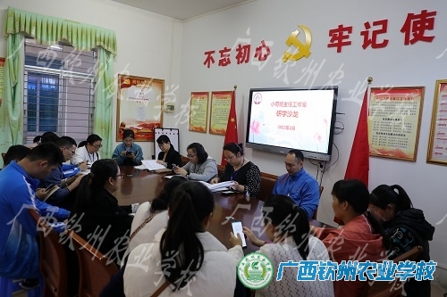 研讨会上,工作室主持人黄筱彦老师和全体成员共同学习了《自治区教育厅关于公布自治区级中等职业学校班主任工作室培育建设项目名单的通知》、《中等职业学校名班主任工作室建设标准》和《小荷班主任工作室申报书》等。经过深入的研讨,初步确定了小荷班主任工作室建设方案的基本内容和建设工作计划。