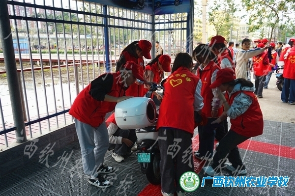 在第60个全国学雷锋纪念日和第24个中国青年志愿者服务日来临之际,3月1日下午,团委组织青年志愿者协会30多名成员在第二实训楼汽车美容与装饰实训室开展“学习贯彻党的二十大精神 学雷锋树文明新风”志愿服务活动,为学校的老师们义务清洗摩托车、电动车。
