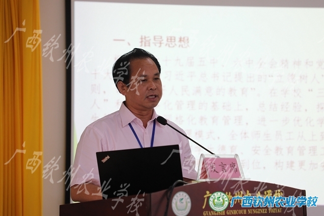最后,党办主任胡礼荣就《广西钦州农业学校学生德育、安全“网格化”教育管理实施方案》议题进行了说明。