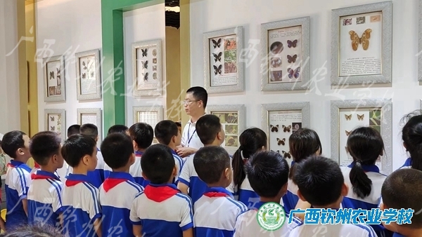 我校充分发挥全国科普教育基地、青少年农业科普示范基地作用,组织专业教师进行科普与指导。在昆虫馆,我校邓万超老师绘声绘色讲解昆虫的基本特征,科普昆虫常识,一一介绍学生常见的蝴蝶、飞蛾、蜻蜓、蜜蜂等昆虫标本和不常见的竹节虫、天牛、金龟子等昆虫标本,以及昆虫危害叶与正常叶的区别,拓宽学生学习知识面,激发学生热爱农业、探索自然的兴趣。在现代农业试验示范园,我校梁秀芳老师带领学生穿梭奇异瓜果观赏区,欣赏瓜果奇妙之处;深入田间示范移栽苦瓜苗,锻炼学生种植本领;指导学生在育苗杯播种青瓜、豆角种子,科普种子从萌发到收获的全过程;到采摘区体验果蔬采摘,亲身感受劳作带来的快乐。
