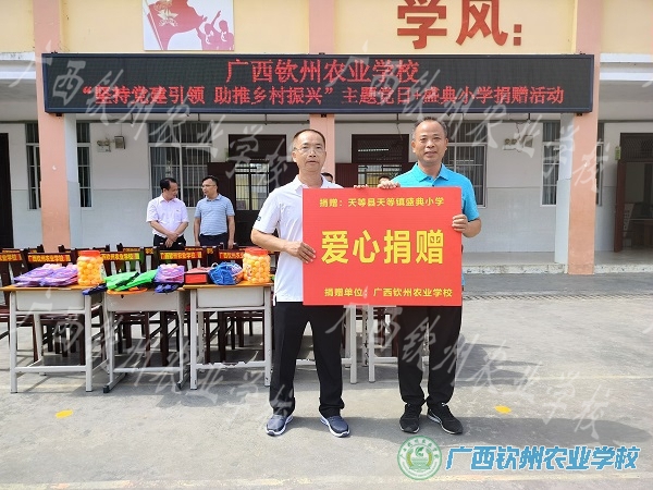 6月2日,我校党委书记、校长伍国樑、党委委员、党办主任胡礼荣代表学校党委到天等县盛典小学开展爱心捐赠活动。我校驻天等县盛典村第一书记吴明、盛典村“两委”班子以及盛典小学全体师生参加捐赠仪式。