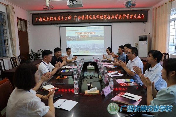 2023年6月9日上午,广西农业职业技术大学教务处副处长赵俊杰一行 6 人到我校考察交流联合办学教学管理工作等事宜,考察交流活动由李运光副校长主持,学校相关科室负责人参加了交流活动。
