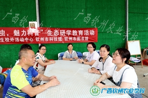 为充分发挥我校全国科普教育基地、全国青少年农业科普示范基地、自治区级中小学研学实践教育基地的作用,6月17日,我校伍国樑校长、梁秀芳老师、利秀秀老师、伍丝老师与钦州市图书馆活动部潘岑部长、钦州市青少年学生校外活动中心刘超君干事、钦州市教育发展研究中心义务教育研究科伍小玲干事在智慧园林中心开展交流座谈会,深入交流如何有效开展中小学生研学教育实践活动。