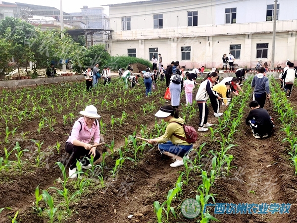 3月18日,钦州市实验小学四(5)班到我校开展农耕研学实践活动。春回大地,万物复苏,又是一年芳草绿,玉米地里的杂草都探出了头,我校教师根据来校同学们的年龄特点,精心选择了适合同学们的劳动——除草。