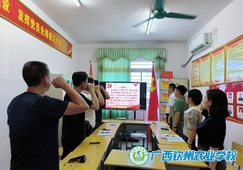 “我志愿加入中国共产党,拥护党的纲领,遵守党的章程,履行党员义务,执行党的决定,严守党的纪律……”全体党员在党支部书记农晓琼同志的带领下重温入党誓词,铿锵有力的誓词表达了不忘初心、牢记使命的坚定信念和决心。接着党员分享了入党故事,分享自己入党过程中难以忘却的心路历程。随后,学校党委委员、副校长邓业斌同志结合学习贯彻习近平新时代中国特色社会主义思想主题教育为党员上了一堂《筑牢安全防线 助推高质量发展》的专题党课,让大家接受了一次深刻的安全教育和警示教育,进一步夯实学校安全管理工作。