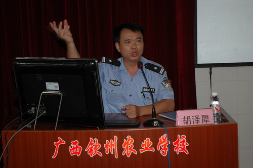 钦州市交警支队一大队胡泽犀警官作交通安全专题讲座