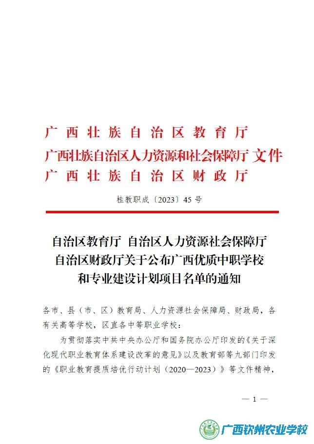 近日,我校喜讯传来!我校成功地入选了广西壮族自治区教育厅、人力资源社会保障厅和财政厅公布的广西优质中职学校,植物保护和农产品贮藏与加工专业入选了优质专业建设计划项目名单。这一殊荣标志着我校在中等职业教育领域取得了显著成绩,并受到了相关部门的高度认可。