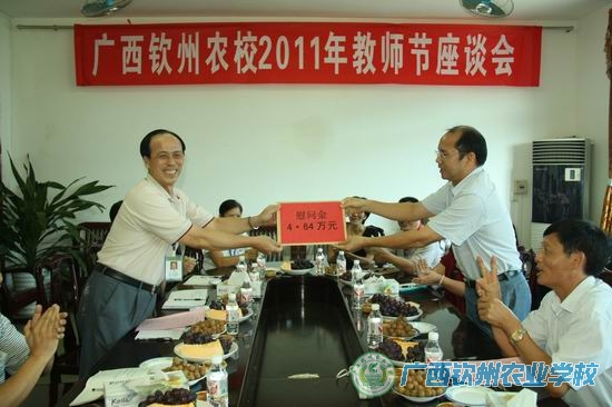 胡德泉处长代表农业厅向钦州农业学校送上节日慰问金。