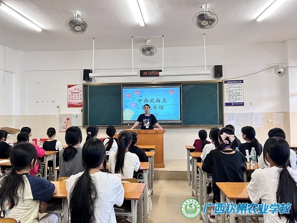 图为王宇桦老师对2023级中西式面点专业学生进行专业介绍