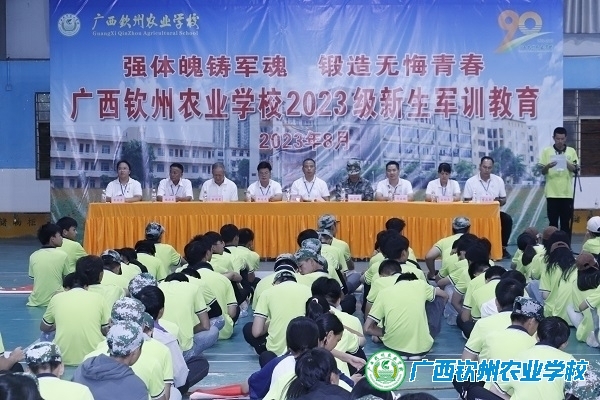 9月3日上午,我校2023级新生军训会操暨总结表彰大会在综合球馆隆重举行。钦州市钦南区人民武装部参谋林色斌,校党委书记、校长伍国樑,副校长李运光,副校长邓业斌,以及学校部分科室负责人、军训教官、2023级班主任、指导老师和全体新生参加大会。大会由学生科副科长曾庆朗主持。