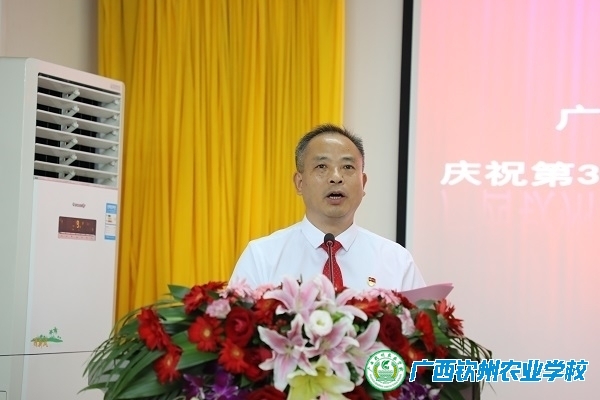 党委书记、校长伍国樑作节日致辞。他首先向耕耘在教学、管理、服务一线的全体教职员工和为学校发展做出贡献的离退休教职员工致以亲切的节日问候,向受表彰的先进个人表示热烈的祝贺,向2023年新入职的新教师表示诚挚的欢迎。他总结了上一学年以来学校取得的喜人成绩。学校品牌建设成果突出,被推荐为自治区职业教育“三全育人”典型学校、自治区中华优秀传统文化艺术传承学校、广西绿色学校、广西科普教育基地,被自治区教育厅、人社厅、财政厅确立为广西中职学校“双优”立项建设单位。学校竞赛和教师个人赛成绩有超越,荣获多个奖项。学校招生目标有新突破、办学规模进一步扩大。此外,伍国樑校长还同全体教师一起重温了党的十八大以来习近平总书记对教师的关怀和勉励,并分享了对教师的三点要求和学习体会。一是把师德作为第一标准,加强自身的德行修养。二是把治学作为第一追求。三是把育人当做第一要务。他勉励全体教师要做传授知识的经师,更要做善于育人的人师。要以学生为本,真正热爱学生、关注学生身心健康,用真情、真心、真诚感化学生,做学生的引路人。同时要认清中职学校是培养技能型人才的学校定位,要按学生自身长处来培养学生特长优势,把学生培养成有用人才。