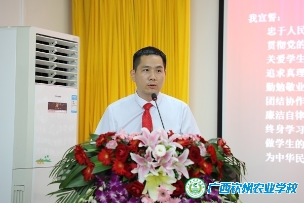 在党委委员、人事科科长陈贵才的带领下,全体教师进行了庄严宣誓。“忠于人民的教育事业,履行教师的神圣职责,贯彻党的教育方针,落实立德树人使命……为中华民族伟大复兴贡献自己应有的力量。”铮铮誓言,铿锵有力,在整个会场久久回荡。