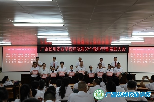 副校长李运光宣读2022-2023学年度先进教育工作者和优秀教师表彰决定。副校长邓业斌宣读自治区农业农村厅慰问信及学校慰问信,传达厅属领导、学校党委和领导班子向学校全体教职员工致以节日的祝福和对学校发展的希望寄语。主席台就座的领导为获奖教师进行颁奖。
