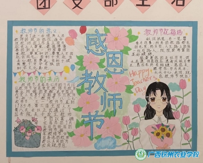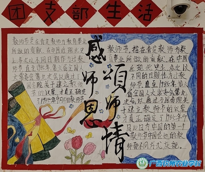 在教室中,各班学生绘制了教师节主题的团支部生活板报,团委在学校各处设置了合影相框,同学们自发邀请老师在相框前合影,用图像铭刻和敬爱的老师共同的回忆。