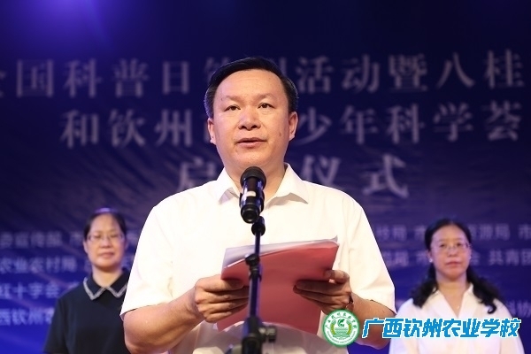 ▲钦州市科协党组书记、主席何立伟为活动致辞