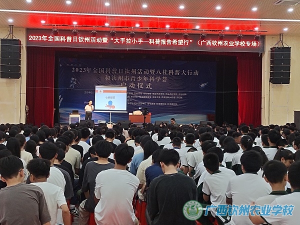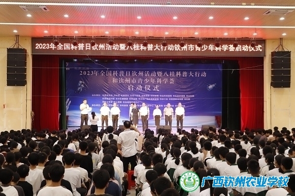 9月26日上午,由钦州市科协、市委宣传部、市教育局等19个单位共同主办,我校承办的2023年全国科普日钦州活动暨八桂科普大行动和钦州市青少年科学荟启动仪式在我校大礼堂隆重举行。本次活动围绕“提升全民科学素质,助力科技自立自强”主题,旨在弘扬科学精神,普及科学知识,激发创新活力,提高全民科学素质。钦州市科协、市委宣传部、老干部局、教育局、科技局、自然资源局、生态环境局、水利局、农业农村局、卫生健康委等主办方领导,我校党委书记、校长伍国樑出席启动仪式。我校部分班级学生参加仪式。
