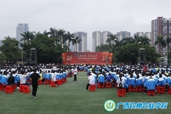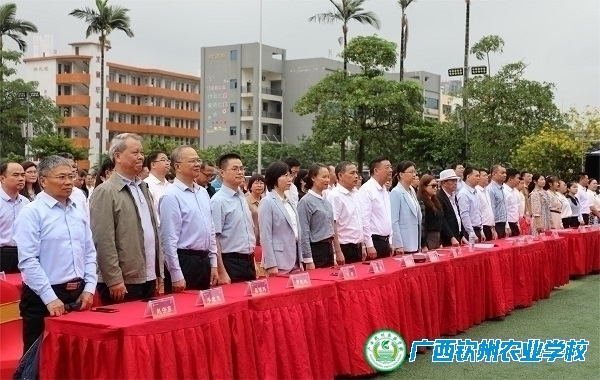 金风送爽丹桂香,喜迎宾朋聚钦农。10月29日上午,我校在大操场举行建校90周年办学成果交流会。自治区农业农村厅党组成员、总农艺师、一级巡视员李如平、自治区农业农村厅科教处处长左明、自治区教育厅职成处副处长王卓、钦州市人民政府副秘书长陈朝文、牵头捐资筹建学校的香翰屏将军之子香灼玮先生以及上级主管部门、厅属院校、兄弟院校等其他领导与同仁、学校离退休领导、历届校友出席办学成果交流会,全体师生参会。