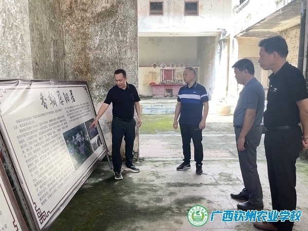 伍校长一行在香翰屏将军后人的陪同下,参观了民国时期浦北最大的府邸——香翰屏将军故居。香翰屏将军故居座落在浦北县石埇镇坡子坪村委会老城村,建于1936年,是一座集西方建筑风格和中国传统古建筑特色于一体的别墅式、庄园式的将军府邸,于2002年7月被浦北县人民政府公布为县级文物保护单位,2017年12月被广西壮族自治区人民政府公布为区级文物保护单位。在参观过程中,伍国樑校长一行为香翰屏将军一生不论身在朝堂或乡野,始终保持爱国爱家乡的情怀,旅居中国香港后也不忘施恩桑梓,得到乡里人的尊敬爱戴的事迹感到由衷的敬佩,并非常感激当年将军开创了钦州农校的历史。
