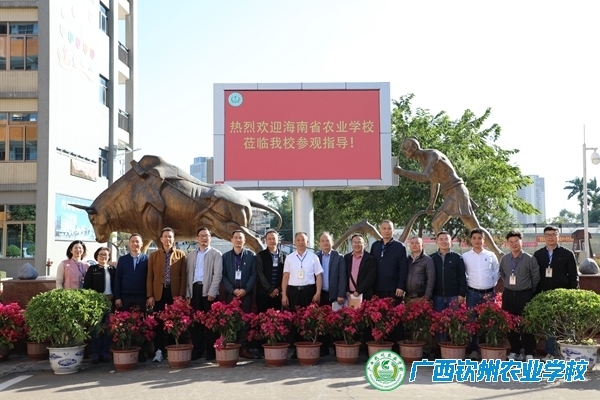 2023年11月16日(周四)下午,由海南省园林技术工作室主持人、海南省农业学校种植教研室高级讲师王耀山教研室主任带领的省园林技术工作室成员一行8人,到我校进行考察交流活动。由我校伍国樑校长、李运光副校长、邓业斌副校长等校级领导的亲自带领、其他科室领导的陪同下,与贵宾一道参观了我校的校史馆、昆虫馆和智慧园林中心。最后宾主在农耕雕像前一起合影留念。