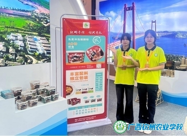 我校电商222班梁小珍、电商231班陈小红同学展销钦州手信--钦州猪脚粉